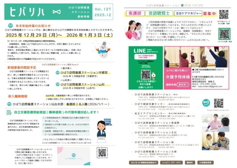 ヒバリのこころ2025年12月号配布中です!今回のインタビューは、福島市のデイサービス元気サポート様と職員インタビューを掲載させていただいております! -